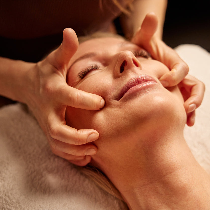 We use high touch specialist sculpting facial massage to aid in lymphatic drainage, work your facial muscles & aid relaxation. These techniques also encourage softening of lines and lifting. You will experience increased blood flow, fluid drainage, tension release, and a lifted/ glowing result.